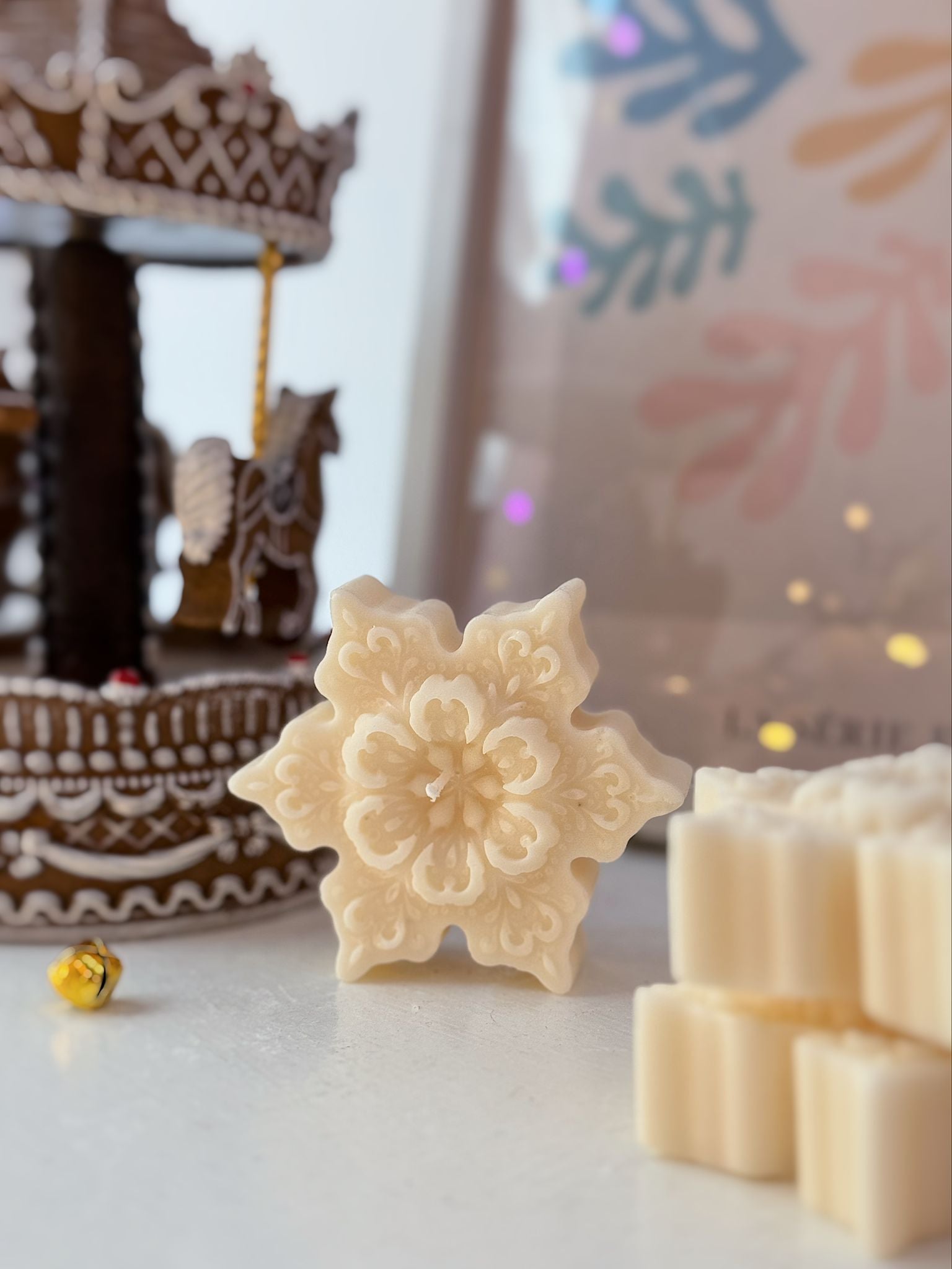 Realizzata nel laboratorio di Burnbaby, la candela a forma di fiocco di neve è in cera di soia naturale, vegetale e vegana e come tutte le nostre candele estetiche ha la profumazione naturale della cera. Abbinala alle altre candele della bellissima collezione natalizia