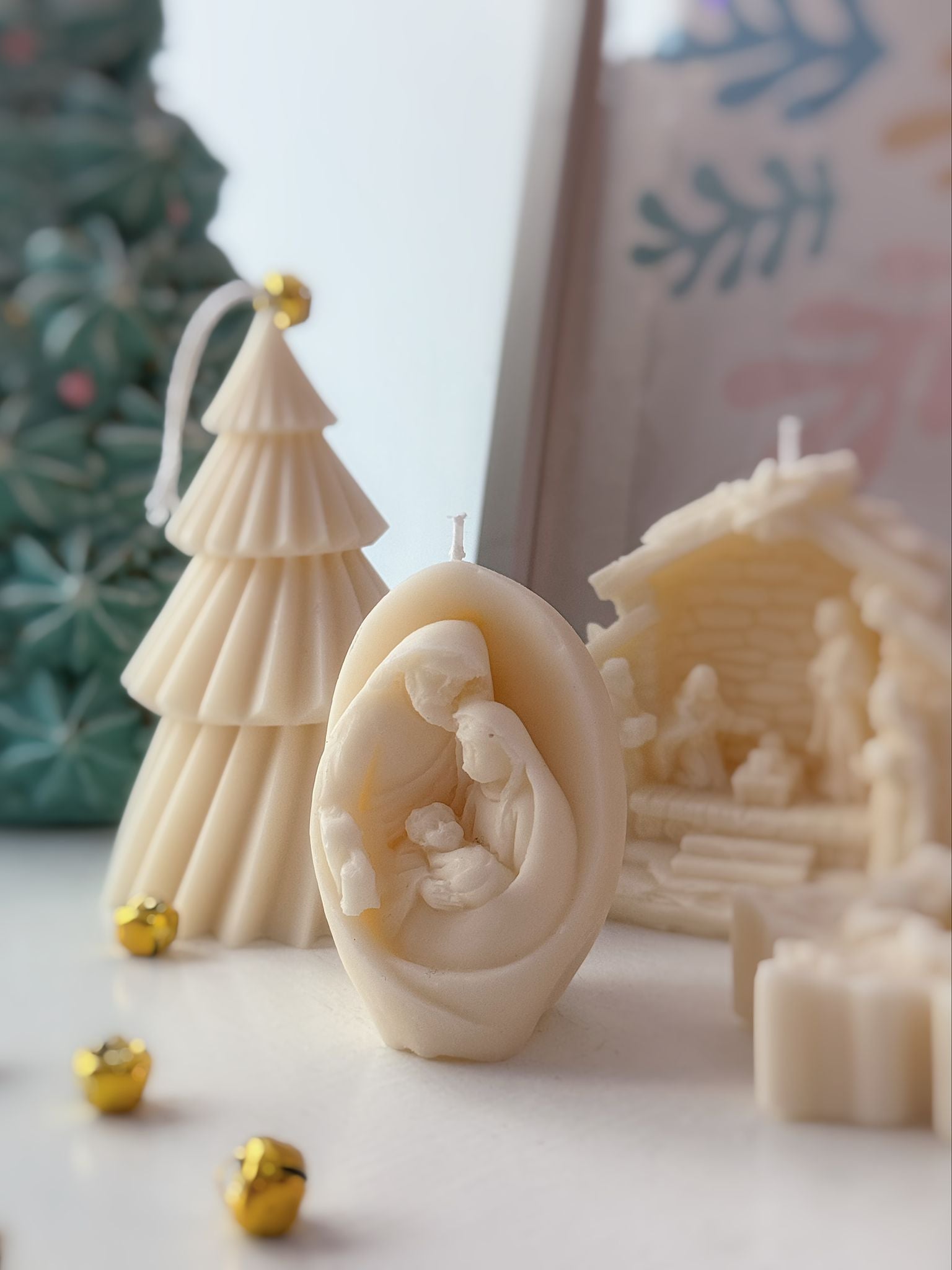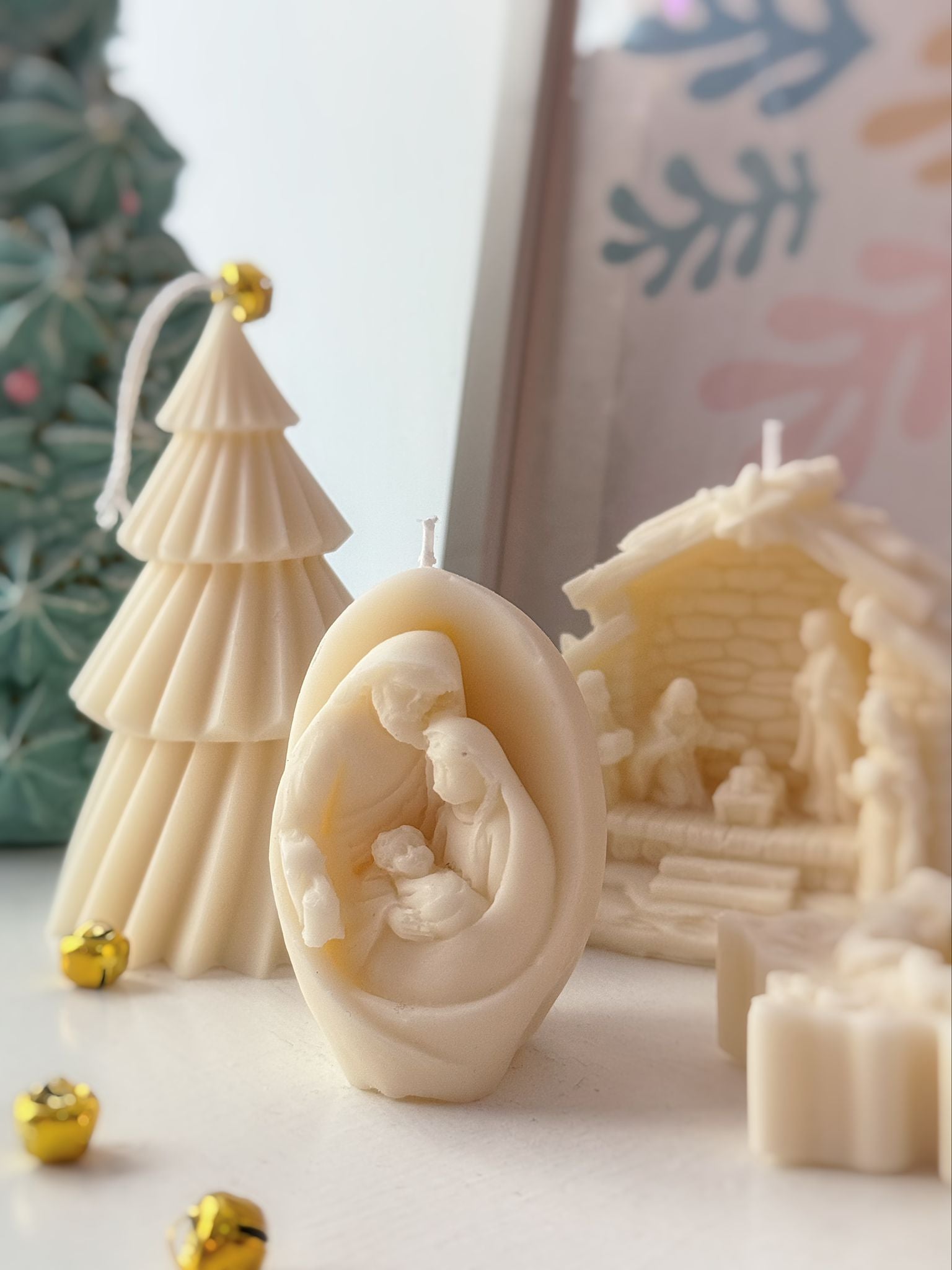 Realizzata nel laboratorio di Burnbaby, la candela a forma di presepe è in cera di soia naturale, vegetale e vegana e come tutte le nostre candele estetiche ha la profumazione naturale della cera. Abbinala alle altre candele della bellissima collezione natalizia
